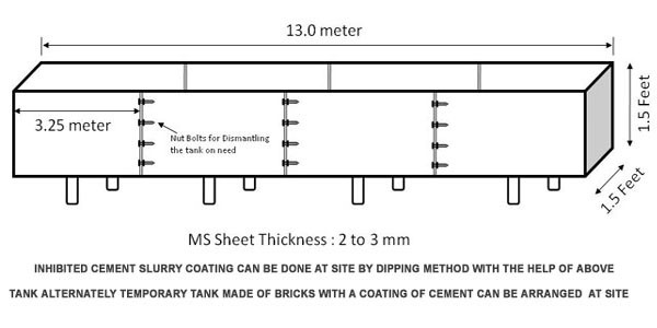 - Two number of tank of suitable size is required to treat the reinforcement bar by dipping method for Inhibitor & Sealing Solution separately .