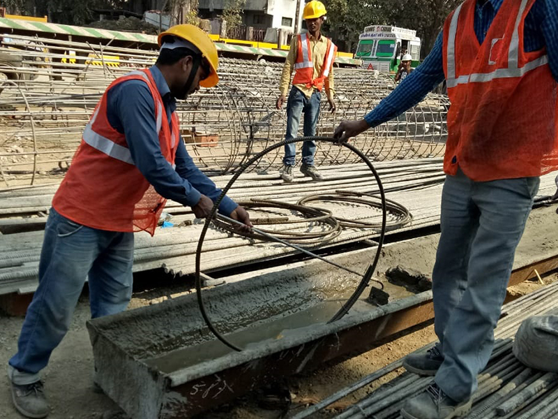 3) CEMENT SLURRY : Two coats of cement slurry made by OPC cement and Inhibitor Solution to protect steel surface from the attack of Sulphate and Chloride ions and to keep the steel surface in high pH atmosphere.